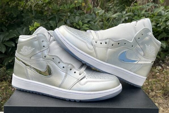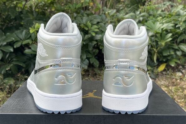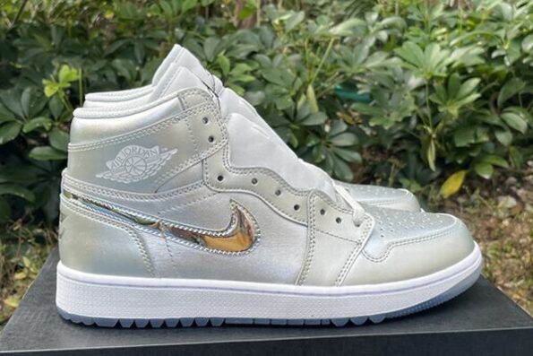 Air Jordan 1 High Golf \’Giving\’ is the embodiment of elegance and performance. With a metallic silver low-top vintage silhouette, this golf shoe (FD6815-001) is the perfect combination of style and functionality. The iconic Swoosh logo adorns the sides and complements the metallic silver detail on the heel, creating a harmonious blend of sophistication and sporty. Air Jordan 1 High Golf \’Giving\’ uses pure white as a base color to become a beacon of refined aesthetics. The silver upper, coupled with metallic silver trim, creates a striking overall effect that exudes pure brilliance. It\’s not just a pair of golf shoes; It\’s also a golf shoe. It\’s a statement piece that effortlessly blends style with performance.