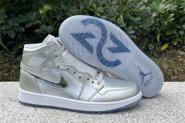 Air Jordan 1 High Golf \’Giving\’ is designed for avid golfers and makes no compromises when it comes to comfort or durability. Anti-slip and wear properties ensure a reliable grip on the golf course, allowing you to swing with confidence. The upper is made of silver full-grain leather, which not only stands out, but also guarantees lasting quality. The transparent sole adds a touch of luxury to the overall design, offering a glimpse of the cheap air jordans craftsmanship of each pair. The crystal clear sole, paired with the silver upper, creates a harmonious visual effect and elevates the shoe to an unparalleled level of sophistication.
