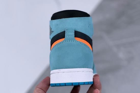 The new Air Jordan 1 High Zoom CMFT 2 Pine Green shoes use Blue and orange as the theme color, and the Blue upper creates a fresh and stylish visual effect. The upper is made of high-quality leather and suede material, which not only looks beautiful, but also has full texture. In addition, the Logo of the flying wing at the upper and the Logo on the tongue, as well as the Swoosh design of the side hollow design, add a rich sense of detail and layer to this shoe.