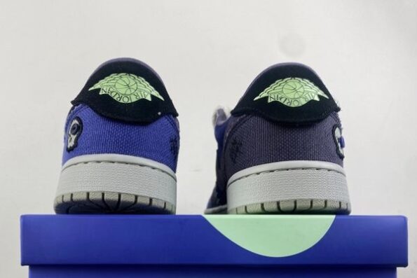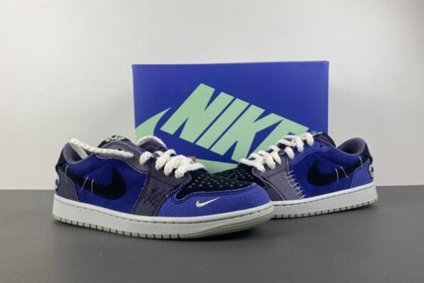 The Air Jordan 1 Low OG Voodoo Alternate is defined by a deep, saturated blue hue. The upper is crafted from a mix of richly textured materials, featuring both fine, soft suede and durable, rugged canvas. The collision and fusion of these different materials not only enhance the visual appeal but also add a sense of depth to the shoe. The blue upper is contrasted with black detailing. For example, the iconic Swoosh logo on the side is rendered in black, much like a dark silhouette against the night sky. This sharp contrast makes the logo more prominent and also amplifies the three-dimensional quality of the overall design.