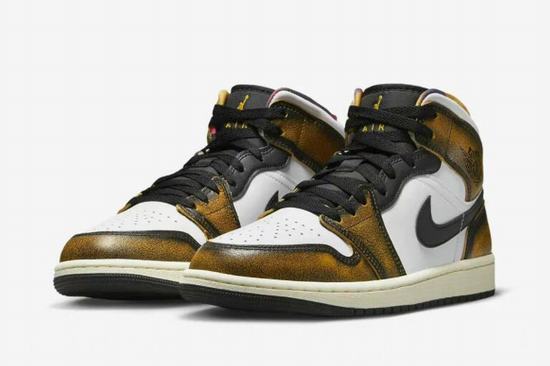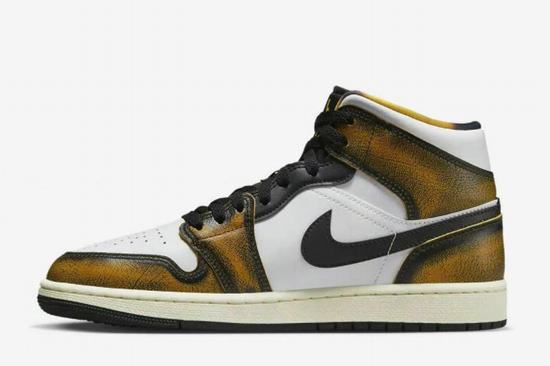 The Air Jordan 1 has always been the most experimental decoration in Jordan\’s first signature sneaker, and the Air Jordan 1 Mid Wear Away style continues this trend. The whole pair of Air Jordan 1 Mid shoes use \’Wear Away\’ as the color matching benchmark. The classic black, white and red stitching and wear method show a \’dirty\’ appearance. What\’s more, the worn out design details are also a highlight.