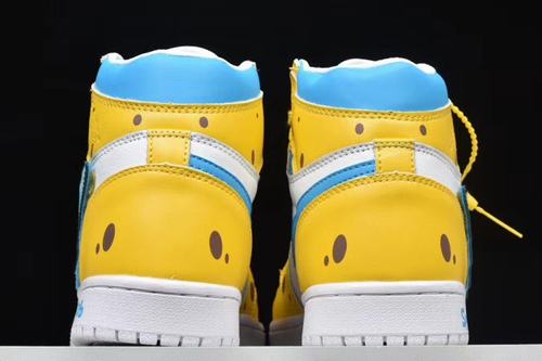 The second-order painting style outlines the shoe body, and the overall blue, yellow and white theme is inspired by the color of SpongeBob. The biggest highlight is to change the original Swoosh on the side of the shoe into a wave pattern detachable configuration, which is the finishing touch of the whole.