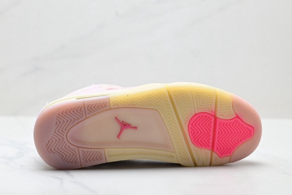The Air Jordan 4, a classic mid-top basketball shoe, is a cornerstone of streetwear culture with its sleek silhouette and iconic Air unit. This “TEX Iced Carmine” version centers on a pink and white color scheme with cream yellow accents, blending classic colorways with a minimalist design to create a “classic Iced Carmine” that is both highly recognizable and collectible.