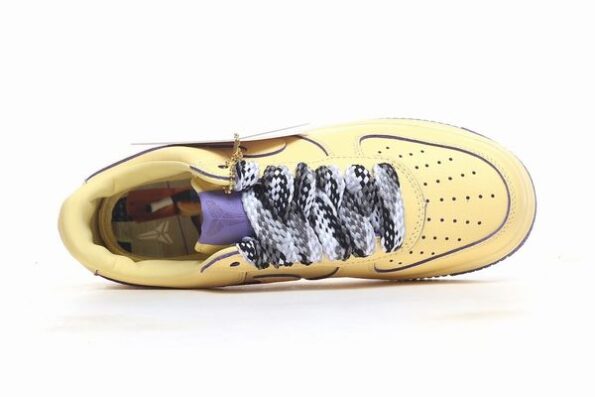 Kobe x Air Force One Low Yellow Purple continues the excellent tradition of the Air Force One series. The midsole is equipped with the classic Air Sole air cushion technology, which can provide good shock absorption effect for the wearer. Whether it is long-term walking in daily life or doing some light exercises, the Air Sole air cushion can effectively absorb the impact force of the ground, reduce the burden on the feet, give comfortable feedback to the feet and reduce fatigue.