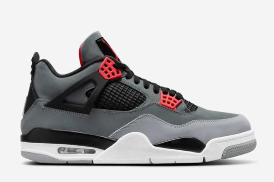 Created by legendary designer Tinker Hatfield, the Air Jordan IV debuted in 1989 and has been revered since its inception. The Air Jordan IV Infrared body is presented in different shades of gray, while the Jumpman logo on the shoelace buckle and tongue is embellished with eye-catching red; in addition, it is equipped with Nike Air cushioning configuration for you for a comfortable foot feel. Put on the new AJ4 to help you look on-trend style.