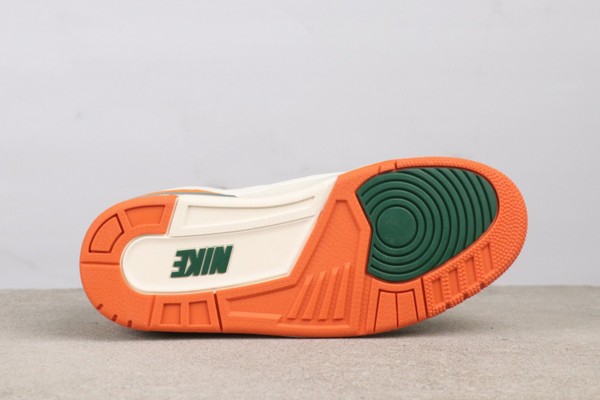 The design inspiration of this shoe is deeply rooted in the diverse and integrated urban culture of Miami, paying tribute to the local sports spirit and engraving the emotional memories of the immigrant group. The upper is based on delicate white荔枝纹 leather, with a transparent and neat texture, and is complemented by a matte green suede layer that outlines the shoe frame, simulating the tropical vegetation greenery of Miami’s streets. The eye-catching orange leather patch at the heel precisely echoes the iconic color scheme of the Miami University Hurricane team, integrating the passionate genes of campus sports into the shoe design, and instantly evoking a sense of local sentiment.