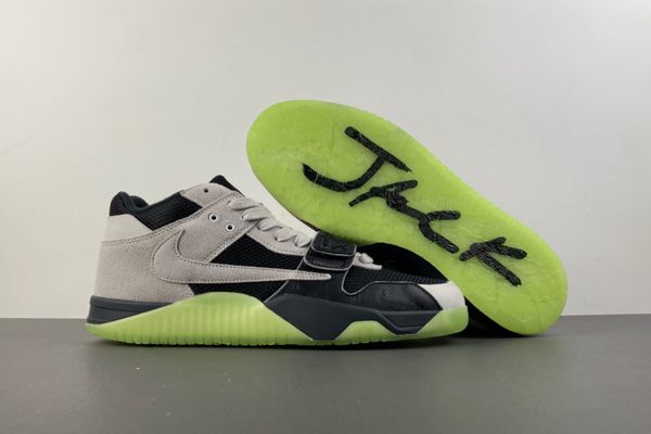 Travis Scott x Jordan Jumpman Jack TR has a unique and layered overall style. The upper of the shoe is made of a combination of black and gray materials, creating a stable yet fashionable atmosphere. The grey parts are mostly presented in suede material, which has a soft and delicate texture, bringing a high-end touch and visual experience, while also adding a touch of retro charm. The black area is made of harder leather or synthetic materials, which enhances the structural stability of the shoes and contrasts with the grey, enriching the overall visual effect.